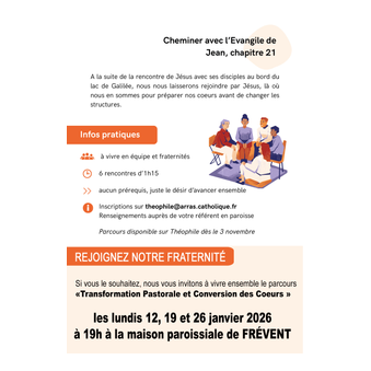 -19h rencontre du Parcours « Transformation pastorale et conversion des cœurs » à la Maison Paroissiale de Frévent