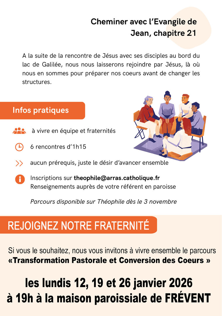 -19h rencontre du Parcours « Transformation pastorale et conversion des cœurs » à la Maison Paroissiale de Frévent
