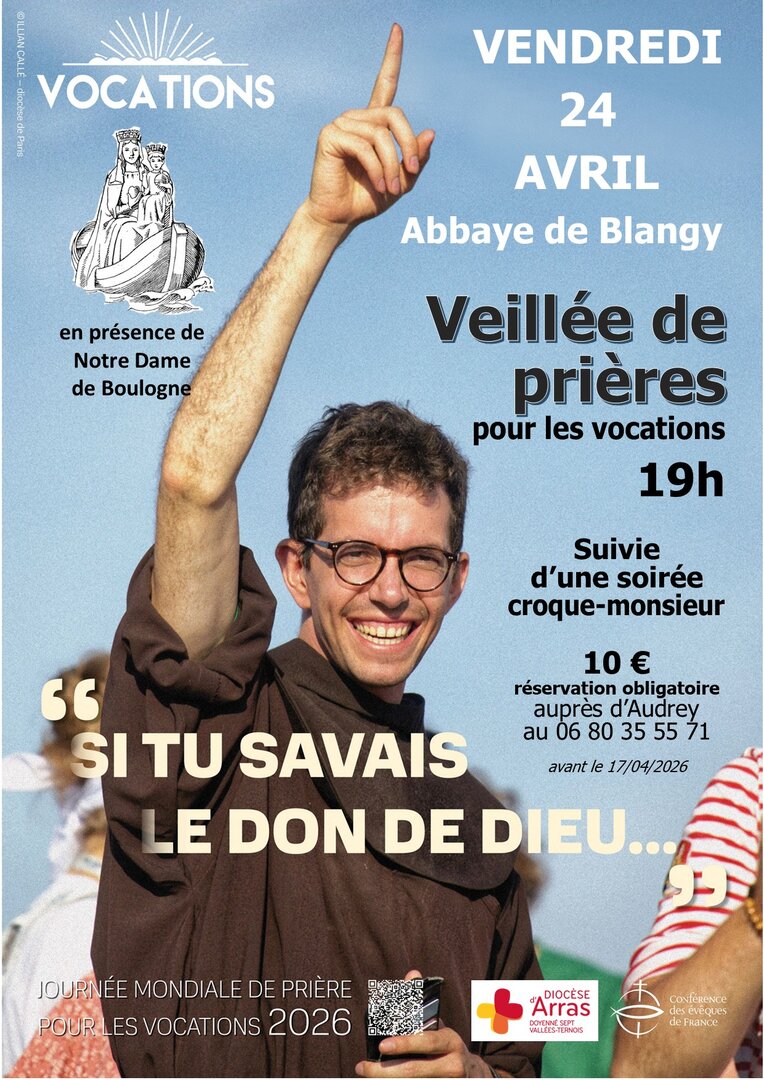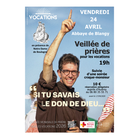 -19h veillée de prière pour les vocations à l'abbaye de Blangy/Ternoise, suivie d'un repas "croque-monsieur" (inscription nécessaire au 06 80 35 55 71)
