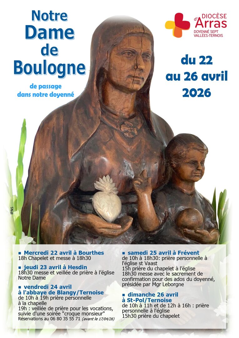 -La statue de Notre Dame de Boulogne est présente à l'église de St-Pol/Ternoise. Possibilité de venir prier de 10h à 16h.